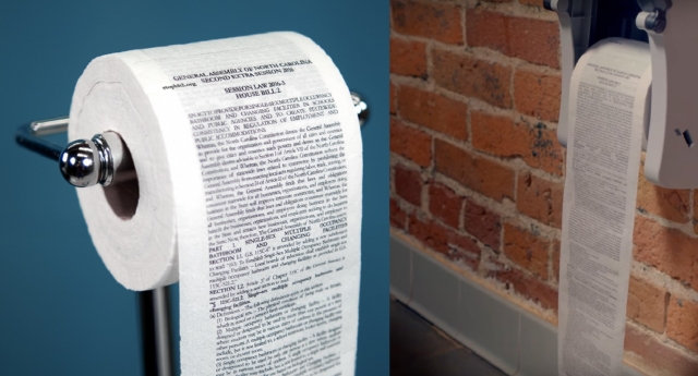 Since the law is so concerned with what you do in the bathroom, it can now get a front-row seat, after McKinney commissioned a line of toilet rolls featuring the entire text of the law.
