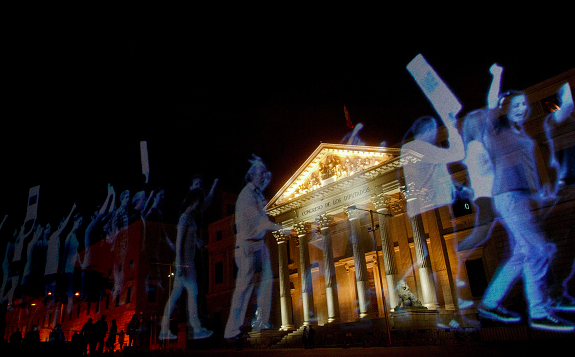 In Spain, when the Spanish Parliament outlawed protests, No Somos Delito, or NSD, created the world’s first holographic protest march. “The law is surreal — so surreal that it drove us to do something equally surreal, “ said Carlos Escaño of NSD. “It’s about art, about going to a place beyond discourse. It’s about touching emotion.” Beyond that, though, it is about defying citizen security laws in a way that both protects civil society and fights the surreal with surreal.