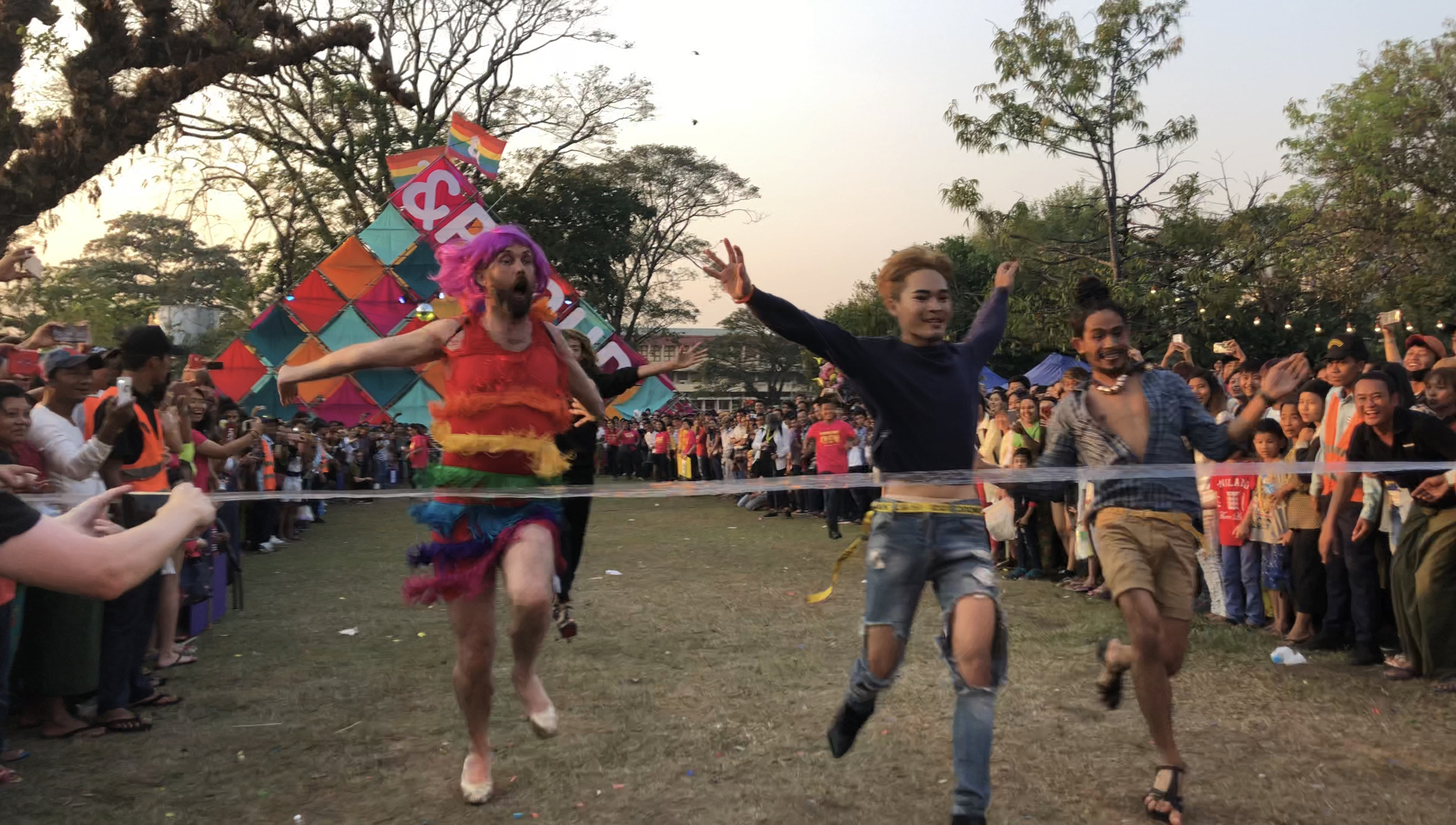 For the second year, we also organized three days of celebrations in a public park downtown. We held concerts, performances by talented members of LGBT community, DJ music; We also screened sensitization clips to show the struggle and resilience of LGBT persons in Myanmar and call for support and acceptance. We held a Hero Awards celebration for the first time, during which we gave the LGBT Hero Award to Okkar Min Maung, a famous Burmese gay actor who committed to become an LGBT champion and advocate; The Media Award went to a journalist who has been portraying accurately the LGBT community over the years, and we rewarded with the Parent Award, Okkar Min Maung’s mother to emphasize how important parents’ support is for their LGBT children. Finally, we organized the “Drag Olympics”, with a Drag Race and a Handbag Tossing competition, and we hosted photo exhibitions about the LGBT community. All this with the official approval of the local government!