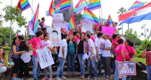 Location, location, location! Activists in Paraguay hold a kiss-in outside the national Congress, for May 17, 2013.
