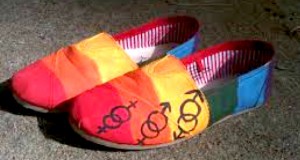 So how do you make visible that you are invisible ???! We brainstormed a lot and came to the idea to put the shoes in the place where the IDAHO rally was crashed last year on 17th of May. We felt that this would convey two messages at the same time: that LGBT community could not hold a rally this year, and that despite this, the LGBT community is present and its existence will always manifest itself in one way or the other. We thought that shoes indeed were a good symbol: they clearly represent people, and suggest that these people stand, hold their ground, but also are on the move. [The idea of shoes was partially inspired by the holocaust memorial in Budapest, where the shoes stand on the side of Danube honoring the Jews thrown into Danube in 1944-45].